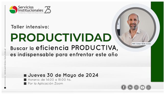 En este taller los ayudamos a replantearse los métodos de trabajo. Preguntarse: ¿Cómo podría mejorar mi productividad? ¿Cómo optimizar la tarea rápidamente? ¿Cómo podría conseguir que mis clientes estuvieran más satisfechos?